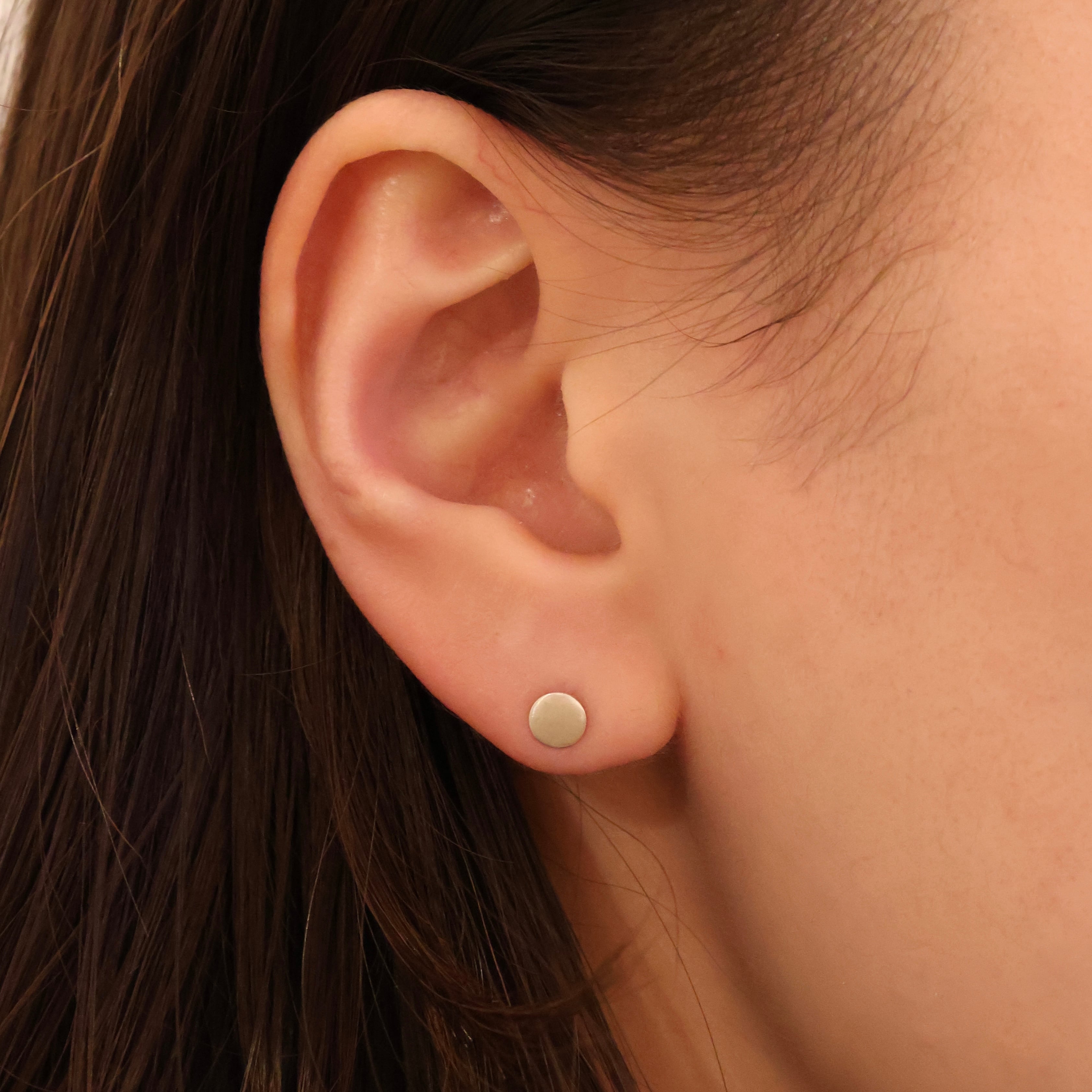 無駄を省いたミニマルなデザインのピアス。小さすぎず大きすぎず、耳たぶや軟骨など、どこにでも使いやすいサイズ感です。