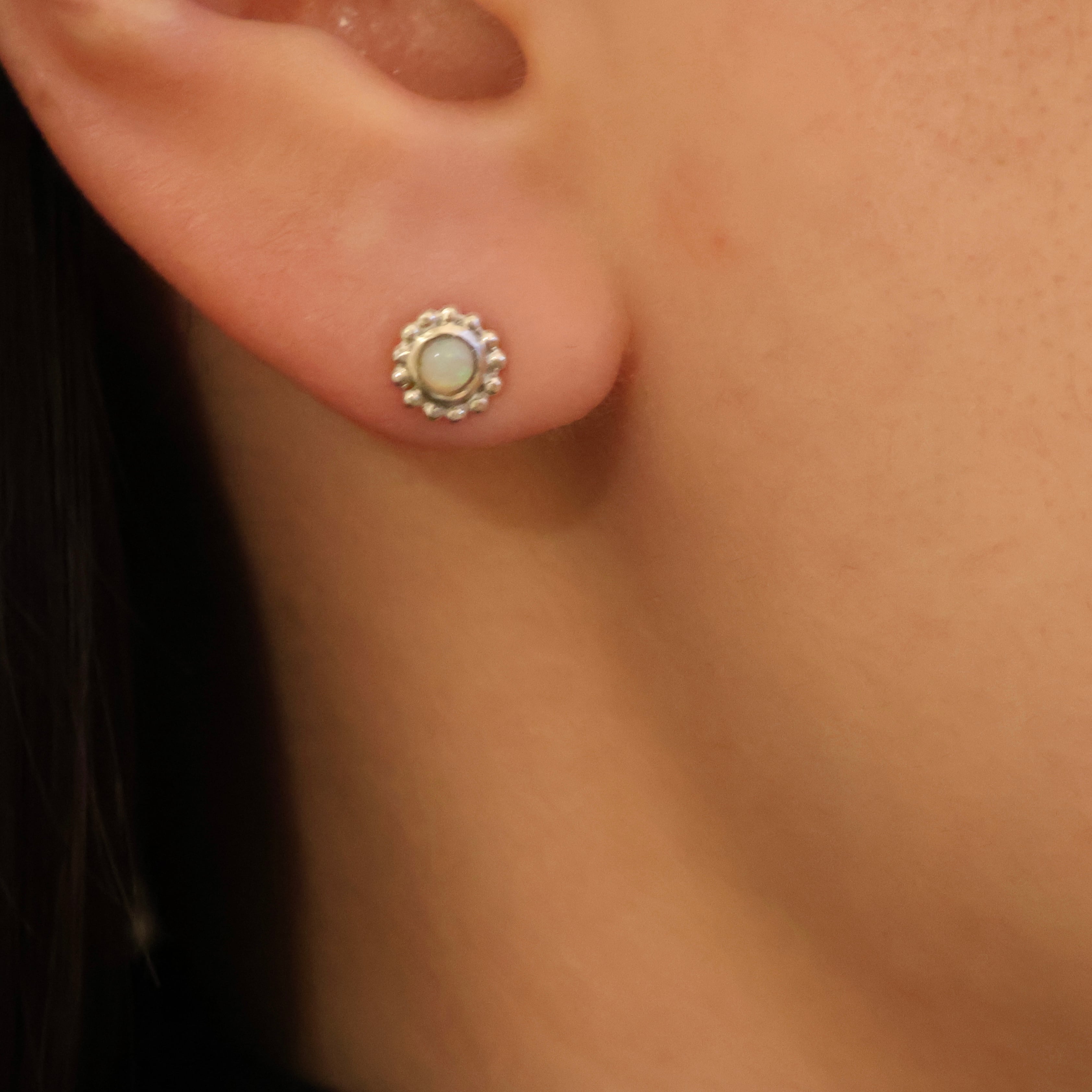 オパールが中央に留めてあります。オパールは古代から人々を魅了してきた宝石です。