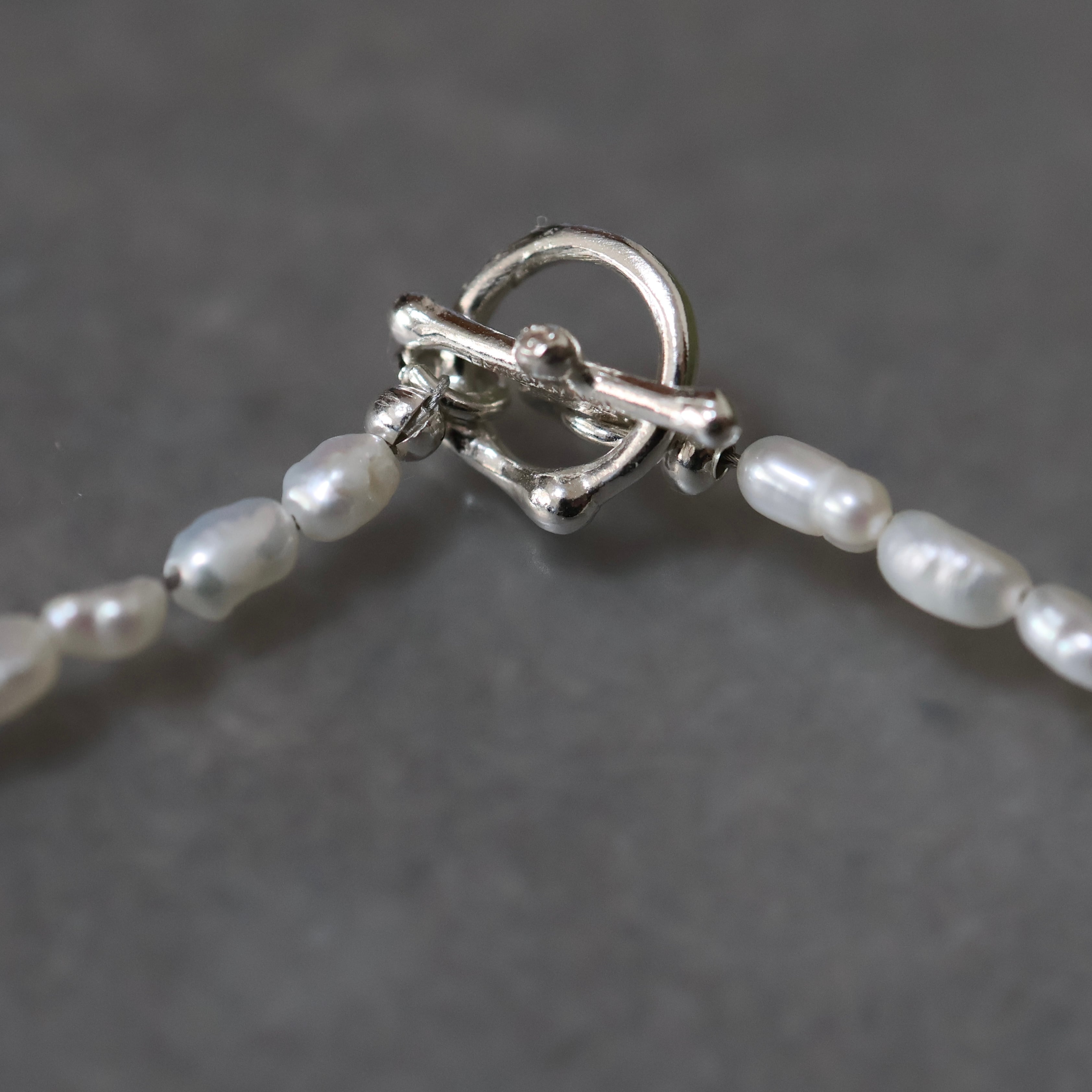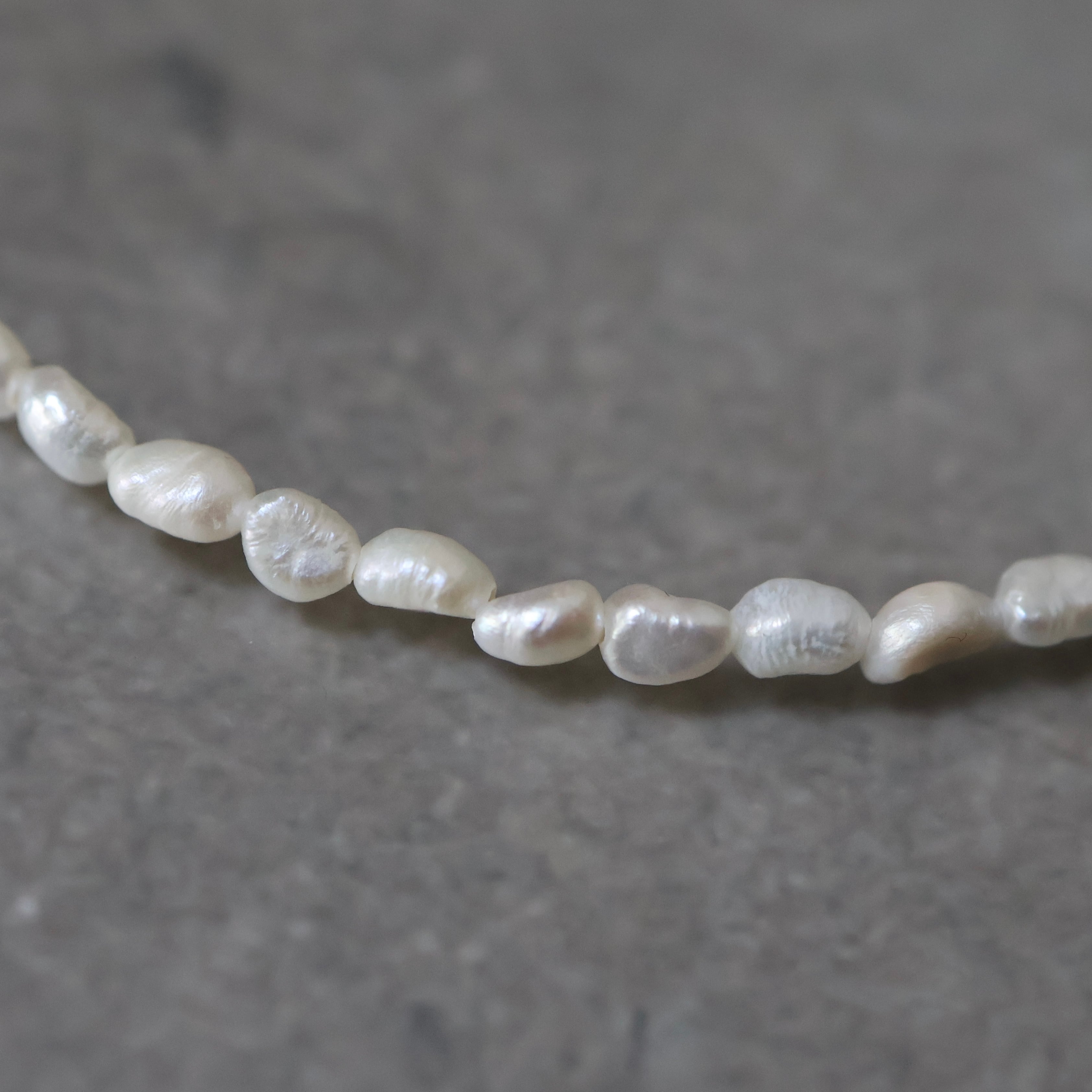 天然石をつかったビーズのネックレスシリーズ。こちらは天然石ではありませんが、淡水バロックパールのネックレスです。