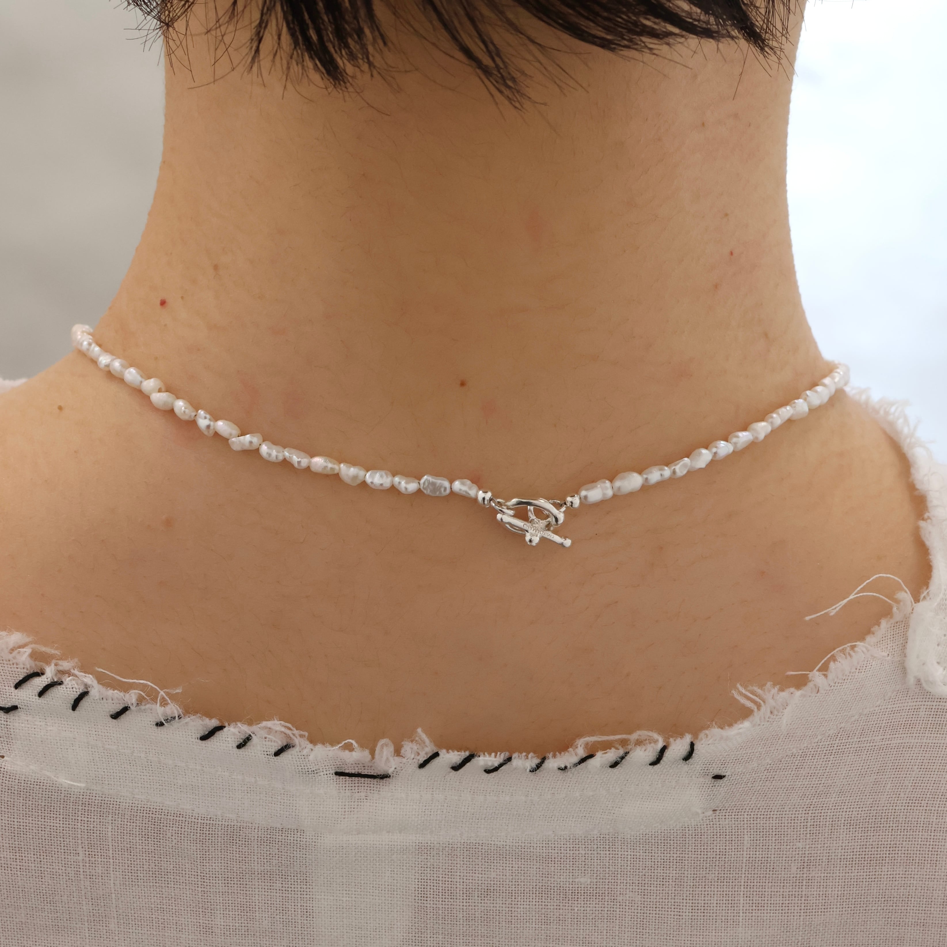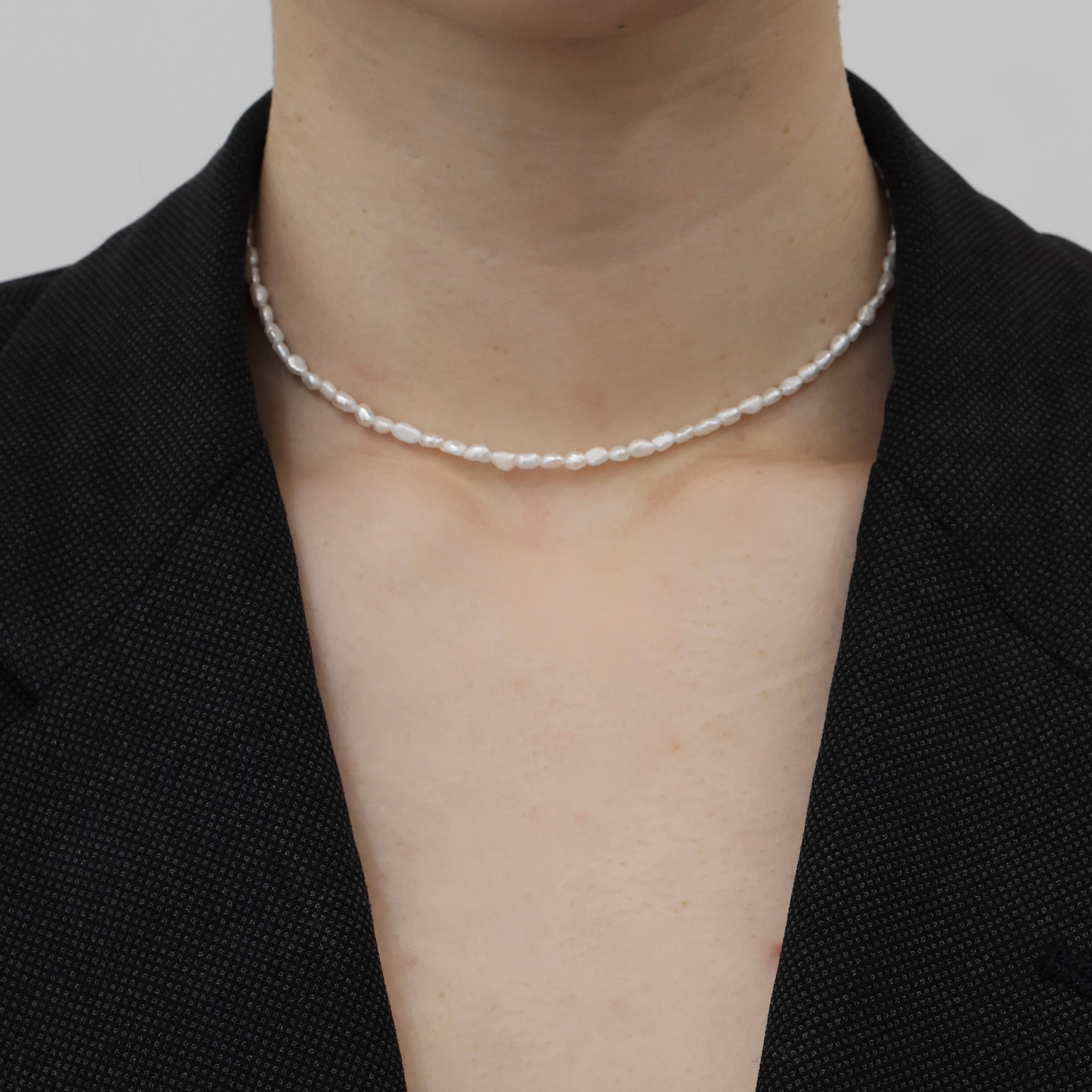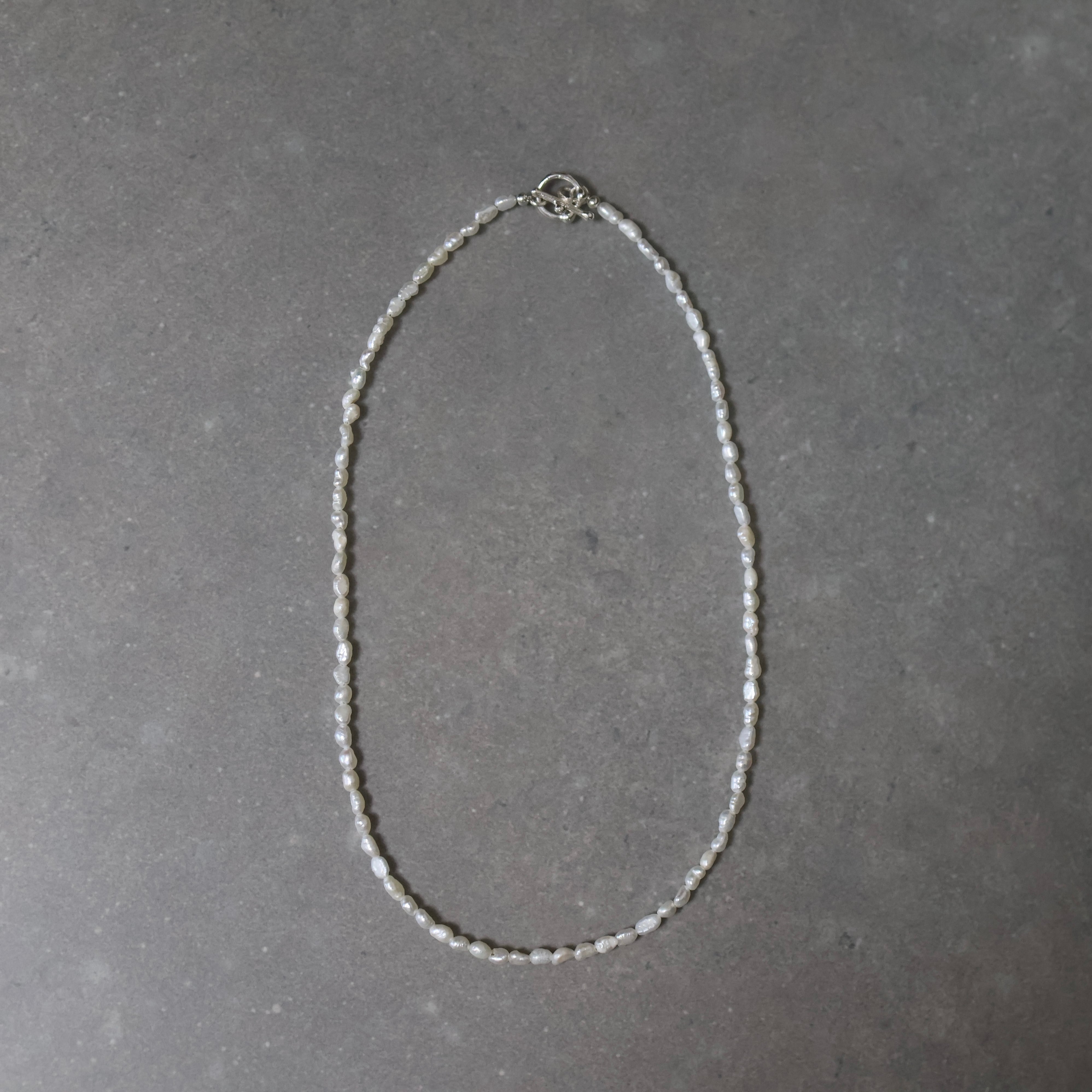 控えめなサイズのパールは1本でシンプルに着用しても、重ね付けをしても楽しめます。