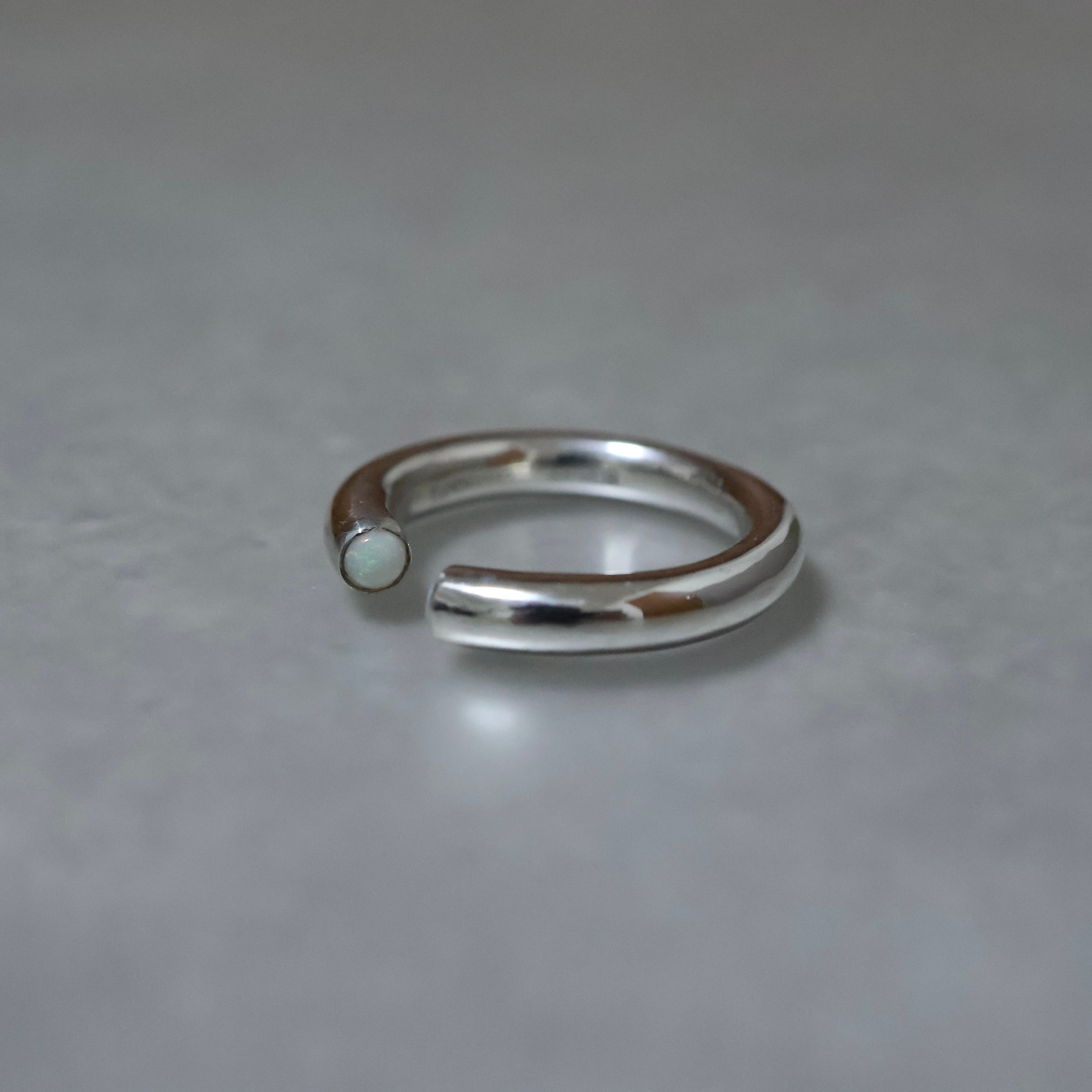 内側にふたつの天然石が留められたリング。