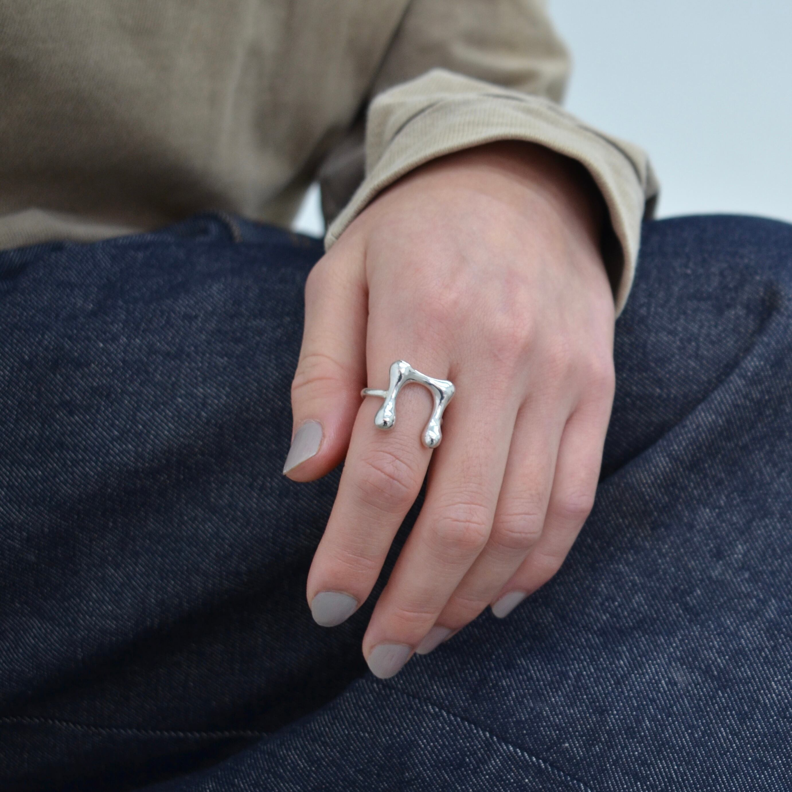 人気のBone necklaceシリーズのコネクトパーツがリングになりました。bigサイズで存在感がありつつもミニマルな印象を与えます。